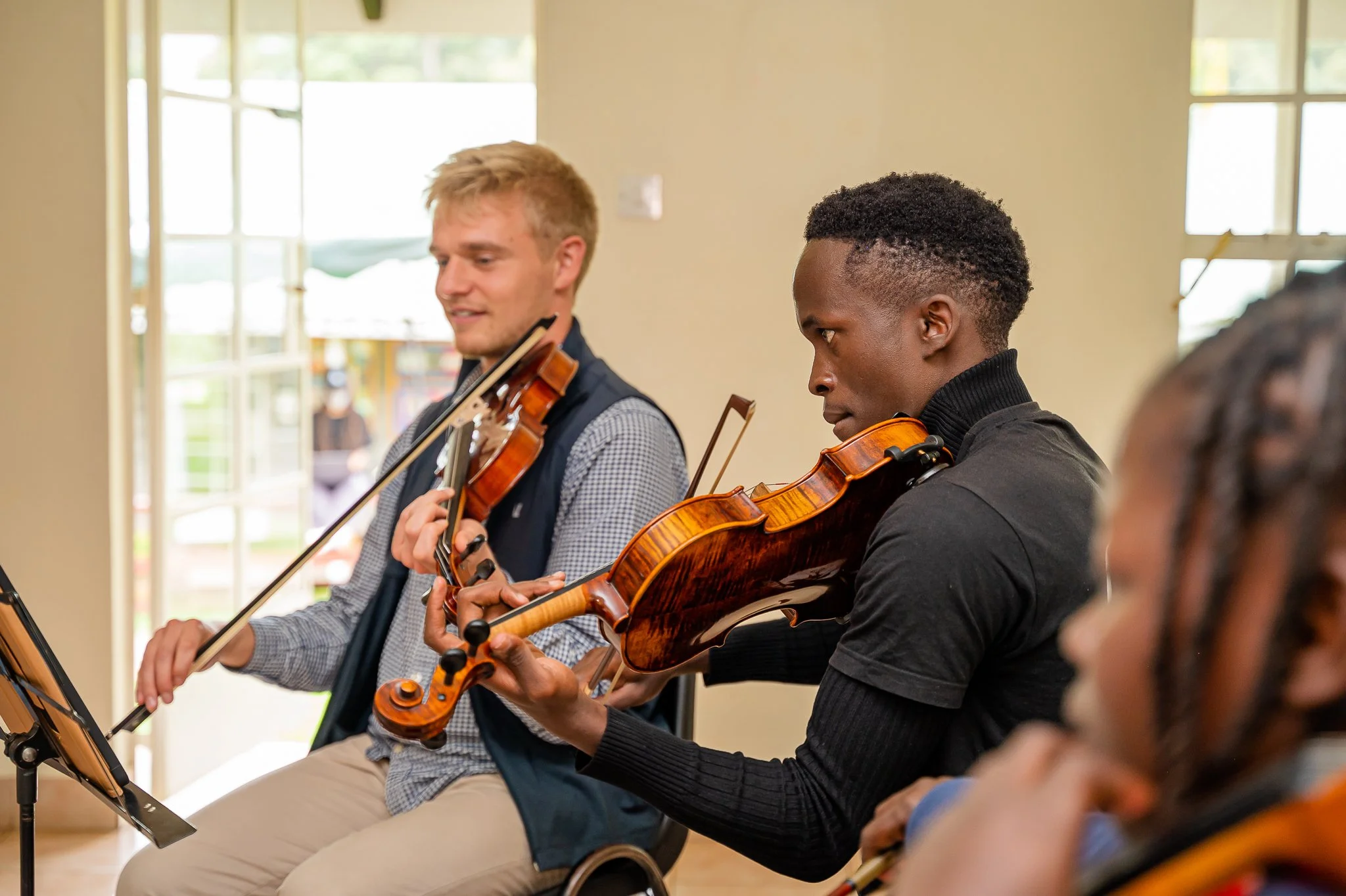 A dedicated educator, Mr. Dudek served as a Teaching Assistant for undergraduate and graduate music theory while earning his Bachelors and Masters degrees at The Juilliard School (Class of 2024), and now, through Project: Music Heals Us, regularly teaches violin, viola, and music theory to students in Kenya and Kurdistan. Dudek deeply values his work serving as faculty for PMHU’s Novel Voices Festival in Turi and Korogocho, Kenya. Equally, Dudek is passionate for his dedicated New York-based private violin/viola studio.